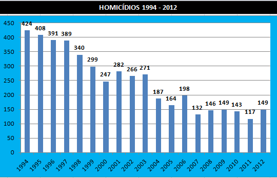 De acordo com os dados de 2012, uma das principais causas do crime homicídio está associada à