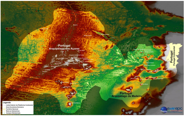 Por outro lado, “a exploração do espaço marítimo é um desafio que se coloca com especial acuidade a Portugal, se atendermos ao facto de este ser um país com uma das maiores zonas económicas exclusivas da Europa, com uma área marítima de mais de 1.700.000 km2, correspondente a cerca de 18 vezes a sua área terrestre. Acresce que a plataforma continental, de acordo com a proposta submetida às Nações Unidas, aumentará significativamente o espaço marítimo sob soberania ou jurisdição nacional”[2].